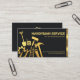 Um cobrir preto apresenta um design de ferramentas criativas de ouro prático, com uma faixa de ouro na direção oposta. No topo está o nome comercial e uma legenda de slogan "Seu Especialista em Construção One-Stop" para divulgar seus serviços ; Você pode mudar as observações de legenda para o slogan para adequá-las às suas próprias necessidades de serviço. Para sul até a base são os contatos. No verso, o logotipo dourado está no topo, seguido do seu nome prestigiado, dos contatos e de uma opção de slogan para divulgar seus serviços. Um cartão para a construção e temas de mão de obra.