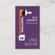 No verso, num cobrir roxo semelhante, o logótipo da casa está no topo, seguido do seu nome, dos seus dados de contato e de uma opção de slogan para divulgar os seus serviços.