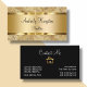 Design de cartão de visita para imobiliário de escala superior criado em ouro e preto com elementos design de cor dourada e fundo de falso caroço granito impresso digitalmente para adicionar um toque de classe neste modelo lateral que apresenta seus serviços de forma elegante. Projetado para uma corretora, corretora, empresa de título ou vendas residenciais de luxo.