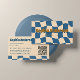 Cartão De Visita Retro Wavy Checkerboard Funky Blue Beige