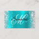 Cartão De Visita Rico De Folha De Azul Turquoise De Prata Monogram