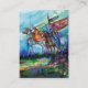 Cavalos medievais com cavalos, pintura figurativa colorida e expressiva contemporânea em azul vibrante, vermelho, branco verde, castanho, aquarela de Alessandro Lumini 1989 inspirada na lenda do Rei Arthur e nas Cavalarias da Mesa redonda.