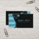Cor damasco floral preta moderna e elegante e espirais azuis com flores delicadas. Monograma opcional