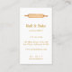 Cartão De Visita Rolling Pin Bakery Chef Caterer Dourado Script