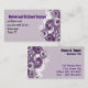 Cotovelos de borda em branco e roxo nesta tarefa fácil de personalizar. Este cartão de visita clássico é projetado com uma design de arte digital espiral roxa e branca quebrada ao longo dos lados da placa com uma cor de fundo complementar. O cartão pode servir para qualquer ocupação quando você personaliza o texto, remove o texto ou usa a ferramenta editar design para selecionar um estilo de fonte, tamanho e cor que você preferir.