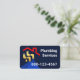 A dark blue cover features a set of leaking gold pipes under a red rooftop building. To the right is the oversize business name "Plumbing Service" which you can change with the contact details.