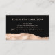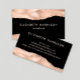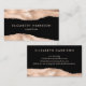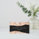 Cartão de visita profissional moderno e chic que apresenta golpes de rosa ouro brilhantes e brilhantes em rosa dourado contra fundo preto. Seu nome e detalhes estão em uma tipografia simples e elegante rosa dourada.