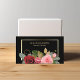 O texto sobre este cartão de visita floral de rosa bonito é facilmente personalizado, então você pode mudá-lo para quase qualquer profissão. A frente apresenta uma imagem impressionante de rosas vermelhas e cor-de-rosa entaladas entre o verde e o embelezamento dourado. O buquê está localizado na parte inferior e em frente a uma estrutura de ouro brilhante. Seu texto personalizado está em ouro no centro. A imagem floral e o texto são colocados sobre um fundo preto dramático. A parte traseira do cartão também é preta, com três campos de texto para personalização. Clássico!