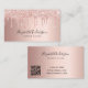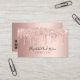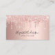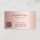Um cartão de visita elegante e glamouroso sobre um fundo rosa dourado decorado com pingos, pintura pingando na frente. Escrito elegante com letras brancas. Personalize e adicione seu nome, título, informações de contato e seu próprio código QR ao seu endereço de site.