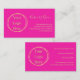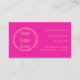 Este é um design de negócios moderno e personalizado. Este simples design de na moda está em cor-de-rosa quente e ouro. O design de modelo está configurado para que você simplesmente adicione suas informações comerciais e detalhes de contato. Ele tem espaço para você adicionar seu logotipo, nome comercial e informações comerciais na frente. No verso, ele tem espaço para as informações de contato da sua empresa, onde você pode adicionar seu site, informações da mídia social, número de telefone e endereço ou informações de sua escolha. Ideal para um cartão de visita profissional e chic para fornecer aos seus clientes e contatos comerciais. Para personalizar, basta adicionar seu logotipo e informações comerciais usando a caixa de texto personalizar. Para alterar a cor ou a fonte, dê uma olhada na ferramenta de edição de design. Se você precisar de ajuda com a personalização, produtos correspondentes ou para um projeto personalizado, entre em contato comigo via chat zazzle ou email: ursuladawnmoon@gmail.com