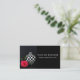 Um design com fundo preto, com uma rosa cor-de-rosa, ao lado de um vaso preto e branco, com design de cartão de visita profissional que poderia ser adequado para decoradores de interiores, designers, planejamento de eventos, etc.