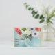 Elegantes rosas brancas e rosadas e anemónias roxas e azuis sobre um fundo azul aqua esverdeado. Este design sofisticado e único é perfeito para casamentos, cartões de lugar, avisos de "save-the-date", cartões de agradecimento, chás de noiva, festas de aniversário de 16 anos, festas, chás de comprometimento, ou praticamente qualquer evento que você deseje!