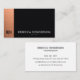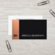 Impress instantly with this stylish black and rose gold business card. The brushed rose gold vertical bar adds soft luxury and warmth against the tactile black leather texture, paired with a crisp white back for sharp, professional contrast. Designed for those who value modern elegance and readability — it radiates confidence, success, and refined taste, making every introduction more memorable and impactful.