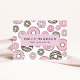 Cartões de visitas bonitos, divertidos e adoráveis com rosquinhas rosa e branca. Design moderno e moderno, perfeito para compradas de bolo, compradas de pastelaria, bares de rosquinha, padarias e bares de sobremesa.