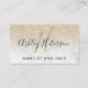 Um monograma moderno elegante, um cartão de visita à moda do maquilhador com tipografia simples moderna elegante do estilo da rotulação da mão no branco em um brilho claro do ouro do falso e um fundo na moda e elegante de mármore branco. todo o texto é customizável, adiciona seus meios sociais.