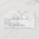 Este cartão de visita caracteriza o nome personalizado no estilo de pia batismal moderno cinzento do roteiro com detalhes do negócio no estilo de pia batismal profissional cinzento no fundo de mármore branco.
