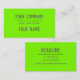 Cartão de visita no fundo verde fluorescente da cor sólida e na rotulação corajosa. Design simples e na moda pelo punhado de Alma. Personalize ambos os lados agora. Vem 100 em um bloco.