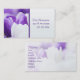 Caracterizando uma fotografia de uma flor roxa bonita ajustada em um design elegante, cor-coordenado, estes cartões seriam grandes para todo o negócio feminino tal como salões de beleza, beauticians, cosmetologists, vendedores dos cosméticos, negócios dos termas & da massagem, e muito mais. Igualmente trabalharia como um cartão pessoal feminino.