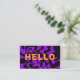 Este design de captura de olhos tem uma fonte em negrito com a palavra "olá", sobre um fundo com um abstrato assimétrico, um padrão giratório a preto. Com cores brilhantes, em roxo para o pano de fundo, e laranja na tipografia na frente.