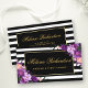 Elegante Puro Ultra Violet Dourado Watercolor, Cartão de visita com estrutura de cores flóricas com faixas Pretas e Brancas