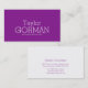 Texto simples e inteligente apenas cartão de visita profissional em roxo e branco. Ideal para profissionais que trabalham como consultores. Personalize com seus próprios detalhes comerciais. Perfeito para profissionais de TI, consultores independentes, consultores de design, freelancers, advogados e outros profissionais associados e independentes. Desenhada por Sarah Trett.