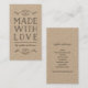 Na moda,, cartão de visita na mídia social vertical, com as palavras "Made with Love" (Feito com amor) entre floresce tudo em cinzas escuras. Este cartão de visita feito à mão é ideal para artesãos e fabricantes de bens feitos à mão, como artistas, knitters, vestimentas, etc., que querem uma maneira de deixar as pessoas que conhecem na vida real saberem como encontrá-las e seu trabalho/portfólio online e nas redes sociais. Essa placa versátil também pode ser usada como uma etiqueta de produto para seus produtos feitos à mão.