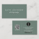 Cartão De Visita Sage Green Modern Script QR Code Mídia Social