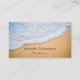 Cartão de visita com uma fotografia de uma praia ouro marrom arenosa com surf branco de espuma.