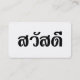 Cartão De Visita Sawatdee / Hello ~ Thailand / Thai Language Script