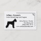 Um simples design preto e branco com uma silhueta de um Schnauzer com uma borda de padrão geométrico no canto.