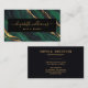 Cartão de visita, Chic e moderno, do Agate Verde e do Script de Assinatura do Marinho Glitter Dourado, este design apresenta uma fonte de estilo de assinatura clássica, Dourada textura de mármore preto Glitter. Perfeito para um salão de beleza, cabeleireiro, maquiador ou cosmetólogo e muito mais.