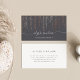 O design moderno Chic apresenta uma cinza média rica com fios verticais de luzes de cordas de folhas de rosa douradas falsas em cascata a partir do topo. Adicione duas linhas de texto personalizado à frente, com seu nome ou nome comercial em script manuscrito chic, e personalize a parte traseira com seus detalhes de contato do cheio.