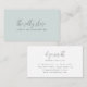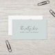 Cartões de visitas elegantes e simples para qualquer ocupação apresentam duas linhas de texto em cinzas clássicas suaves, com seu nome ou nome comercial em letras de caligrafia feitas à mão em na moda de uma letra de escrita caligráfica em um fundo verde de mar pastel mal existe. Personalize a parte traseira com os detalhes de contato do cheio.
