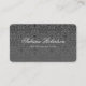 Elegante Faux Silver e Cartão de visita de Script Ornamental Branca Negra.