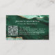 Cartão de visita profissional moderno e na moda com código QR com indicação de gíode verde agate, acentos de mármore e dourado com iniciais de monograma de script de caligrafia de tendência. ALTERAÇÕES: Altere o estilo, cor, tamanho e posicionamento da fonte de texto clicando em EDITAR na seção PERSONALIZAR. ASSISTÊNCIA: para obter ajuda com a modificação ou personalização do design, alteração de cor, transferência do design para outro produto ou você gostaria de coordenar itens, entre em contato com o designer ANTES DE ENCOMENDAR através da guia MENSAGEM de bate-papo Zazzle ou envie um email para makeitaboutyoustore@gmail.com.
