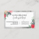Um elegante monograma moderno de letras duplas, um cartão de visita de maquiagem na moda com uma elegante tipografia moderna de estilo simples de letras de mão com uma elegante borda geométrica de folha de prata de cor chica e buquê de cor d'água floral rosa, pintado com a mão vermelha. todo o texto é personalizável, adicione suas mídias sociais.