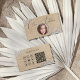Este design profissional, porém exclusivo, apresenta uma tipografia elegante de script, uma fotografia redonda (substitua-a por uma imagem quadrada para melhores resultados), muitos ícones de mídia social e um código QR para personalizar com seu site, blog ou qualquer link. Os ícones das mídias sociais podem ser movidos ou excluídos usando a ferramenta design.