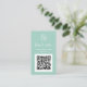 Script moderno minimalista e código QR na mint green business order obrigado você. Adicione sua mídia social. Com uma fonte elegante de script de assinatura, todas as cores são editáveis, adicione seu logotipo. 5 estrelas para seus clientes.