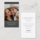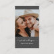 Cartões de visitas de fotografia modernos e profissionais que mostram sua foto com uma tipografia de script minimalista de tendências em um pano de fundo de cinzas de carvão. Adicione suas informações de contato às costas. Inclui três ícones de mídia social e um campo para seu nome de usuário.