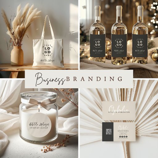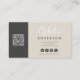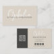 Script natural mínimo moderno boho QRcode beige e cartão de visita preto design.