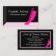 Anuncie seus serviços de manutenção doméstica com este cartão de visita de limpeza preto e rosa giro com um aspirador de pó retrô. Personalize este cartão de visita moderno e na moda, adicionando o nome da sua empresa de limpeza profissional.