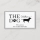 Um cartão de visita monocromático preto e branco. Perfeito para um serviço de estimação, ambulante de cães, babá de cachorros ou cuidados de dia de cão. Em fundo branco, a frase The Dog Walker é escrita em texto tipográfico negro e em negrito ao lado de uma pata preta e imagem contornada de um Dachshund. O seu nome ou nome comercial está escrito por baixo, ao lado dos serviços de cuidados para animais. Personalize adicionando seus negócios de cheio e os detalhes de contato à parte traseira.