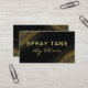 cartões de visitas Dourados de serviço de bronzeamento por pulverização contra pulverização, com fundo preto.