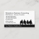 Simples cartão de visita de serviços de consultoria empresarial design modelo de criar com um gráfico de um grupo de consultores profissionais e o layout clássico de cartão de visita que você pode personalizar on-line. Entregue estes cartões telefônicos aos seus clientes para uma promoção profissional criada em preto e branco clássico.