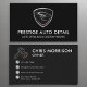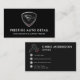Um na moda e modelo de cartão de negócios profissional concebidos para detalhamento automático, lavagem de carros móveis e serviços de cuidados especiais para automóveis. Apresentando um emblema de blindagem ousada com sotaques vermelhos e um layout preto moderno, este design destaca seu nome comercial na frente e seus detalhes de contato no verso. Perfeito para profissionais que desejam um cartão limpo e de alto impacto que os clientes lembram.