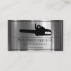Cartão de visita de Serviço de Visualização de Trimagem de Árvore de Logging Metálico Possui uma serra de força preta e um lugar que você pode personalizá-la com seu próprio nome e informação.