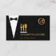 Um tux preto criativo simples com um laço senta-se na parede esquerda. Seu bolso de peito é enchido com o ouro do falso que come utensílios. Diretamente abaixo da mentira do bolso seu nome da empresa prestigioso. Perto da base do cartão você tem o URL do negócio. Para o norte ao canto direito, você tem um logotipo do ouro do falso de um cozinheiro chefe, que você possa usar.