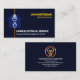 Design apresenta um cabo de alimentação elétrica que fornece alimentação a uma casa azul em um cobrir azul escuro da noite. Este cabo contém o nome comercial e os detalhes de contato perto da base do cartão. No canto superior está seu nome prestigiado e cargo em amarelo.