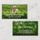 Um cartão de visita profissional criado para serviços de jardinagem, paisagens e jardins. Ele apresenta a verdadeira fotografia de Destei de um novo gramado verde como fundo e uma área fotográfica personalizável para um retrato, permitindo um toque pessoal. Ideal para profissionais locais que querem construir confiança à primeira vista. Personalize com seu nome, contate os detalhes e dê uma impressão duradoura.