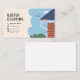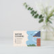 Cartão de visita com uma ilustração de um telhado e sarjeta de uma casa e algumas folhas de queda, atrás de um céu azul, com uma nuvem. As informações de contato personalizáveis do cheio são decoradas com ícones, em um fundo bege. Pode ser utilizado para pequenas empresas, como limpeza ou reparação de telhados e calhas, manutenção de mão, serviço de lavagem de pressão, etc.